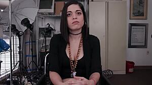 A thick latina works in an office, showcasing her adorable and sexy amateur style