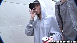 nacho vidal chases young asian katana through barcelona alleys, she kisses and strokes his big cock