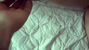 Blue dress on skinny milf with natural tits in homemade pov