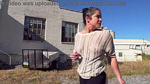 43yo Curvy Flasher Struts Docks in Buttless Pants Outdoors