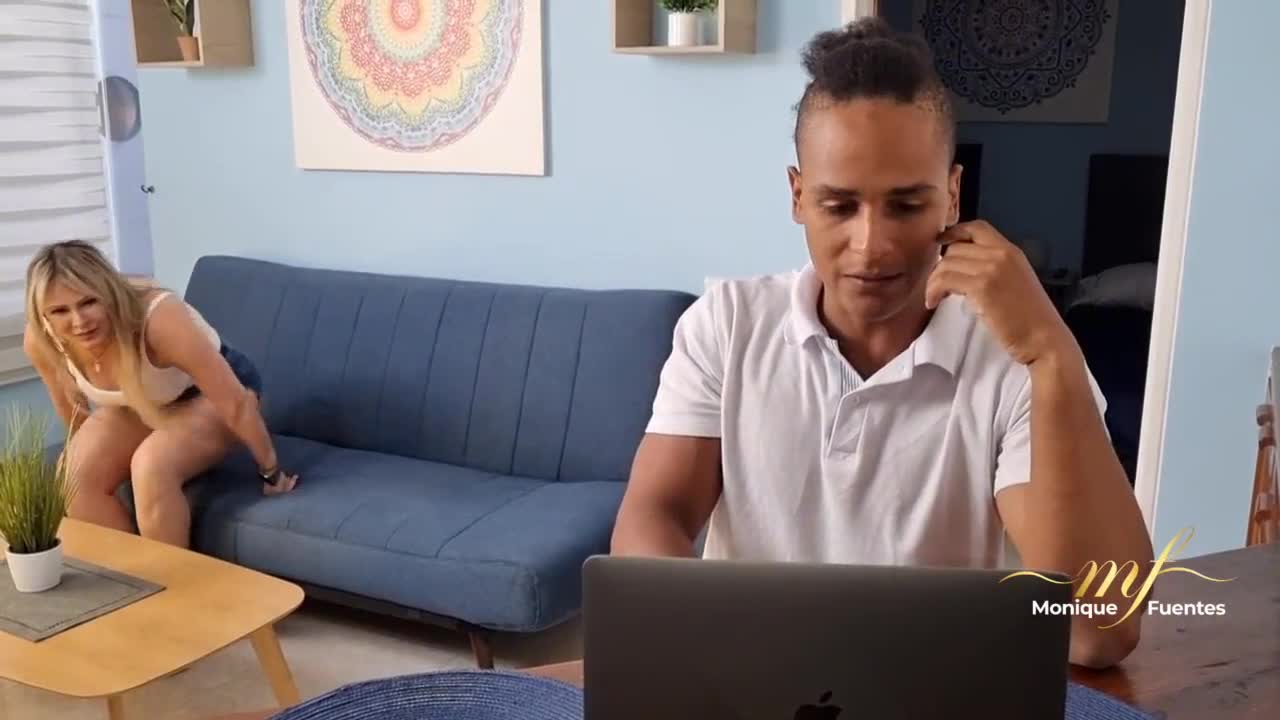 Milf Monique Fuentes catches roommate spying and demands rent with intense sex.