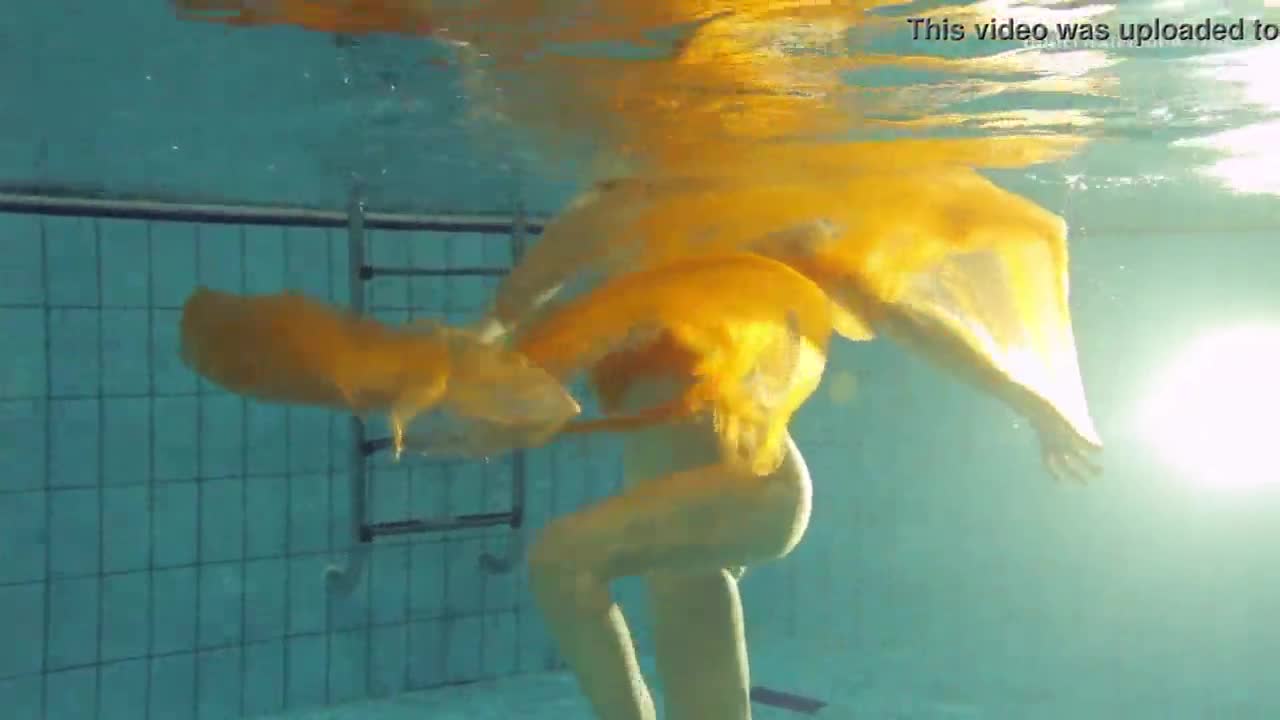 Aqua girl Andrejka strips underwater and swims in the pool.