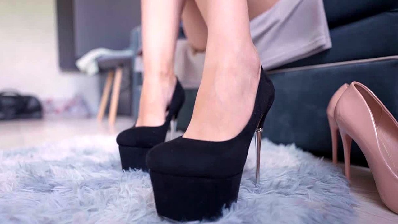 Mistress in Stockings Teases with Red Heels Handjob
